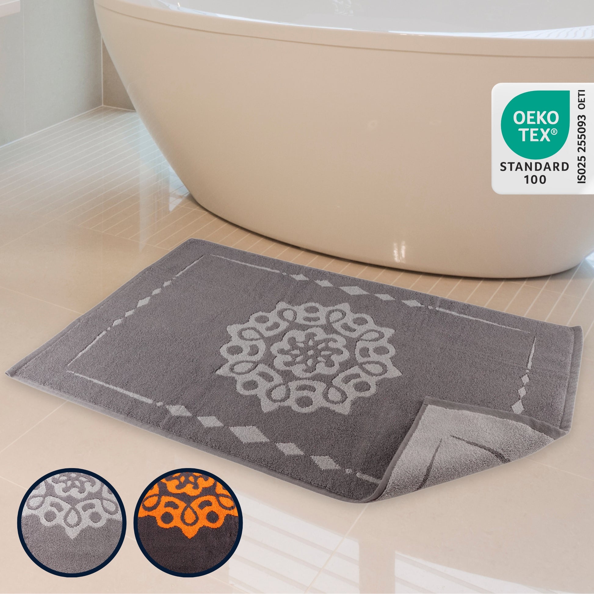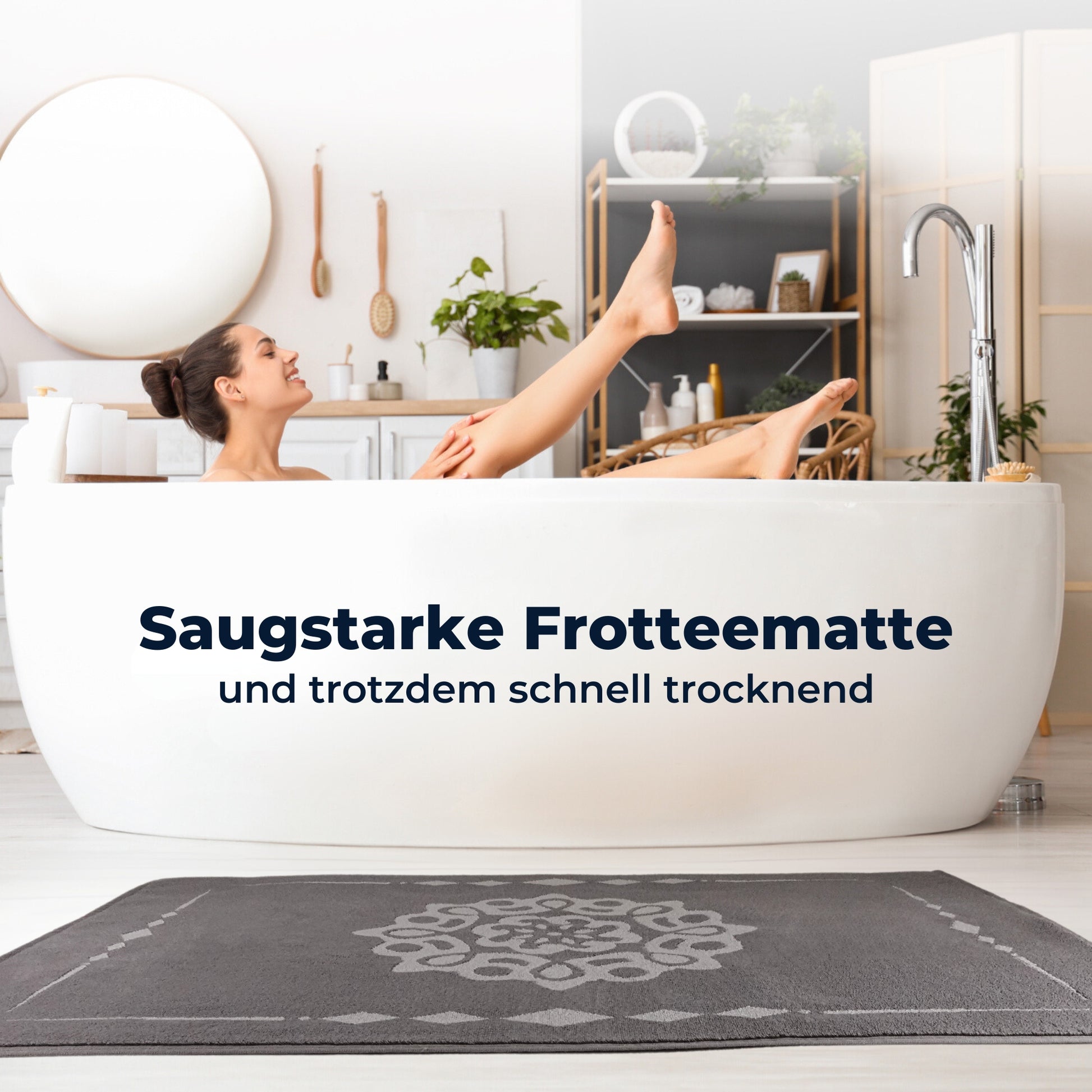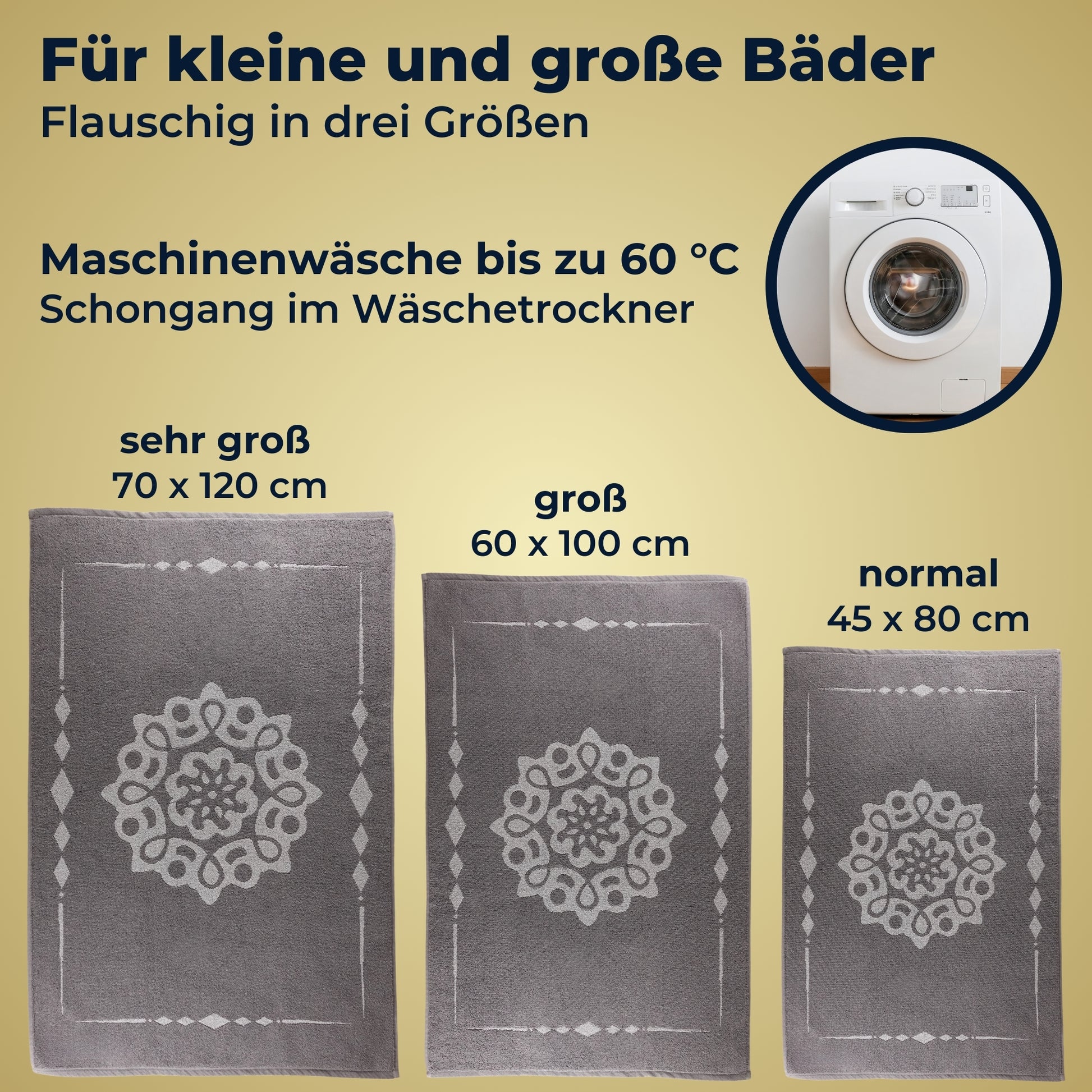 ELEVAVIDA® Design Badvorleger 100% Baumwolle 1000 g/m2 - grau mit Mandala - maschinenwaschbar, schnelltrocknend - Harmonie für Dein Badezimmmer