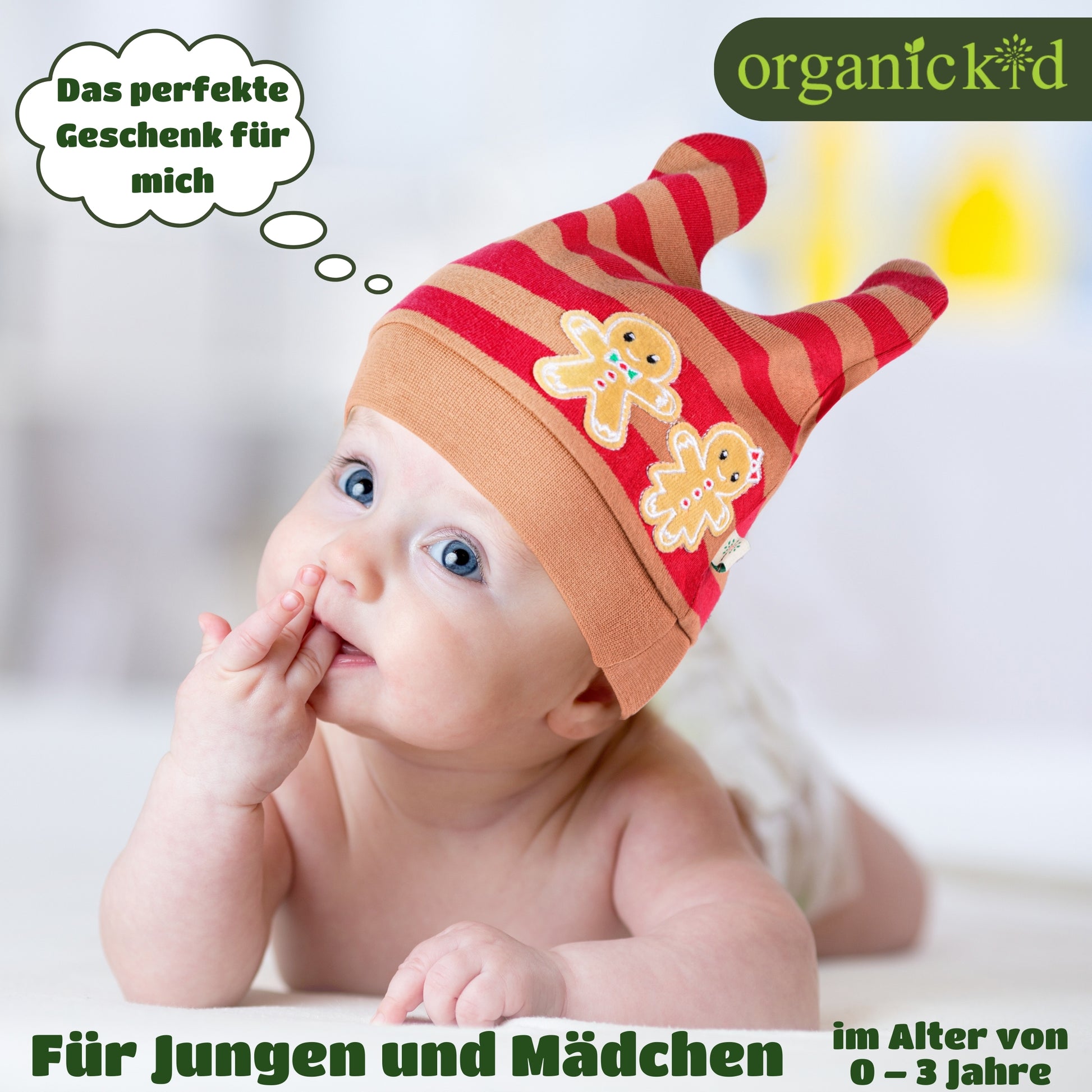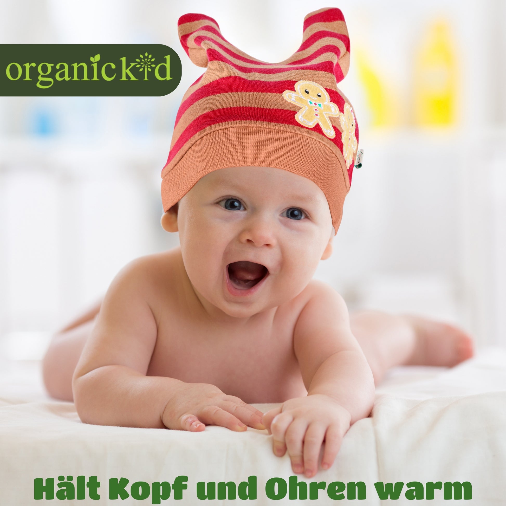 organicKid® Baby Mütze aus Jersey - Reine Bio Baumwolle (GOTS) extra weich für Jungen und Mädchen im Alter von 0-3 Jahre, Slouch, Beanie Zipfelmütze rot (Unisex)