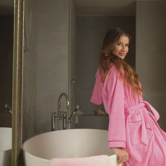 Unsere flauschigen Damen-Bademäntel aus natürlicher Baumwolle sind maschinenwaschbar bis zu 60 °C und bei niedriger Temperatur im Trommeltrockner trockenbar. Bitte keine Kleidung mit Reißverschlüssen mitwaschen, da diese Fäden ziehen können.